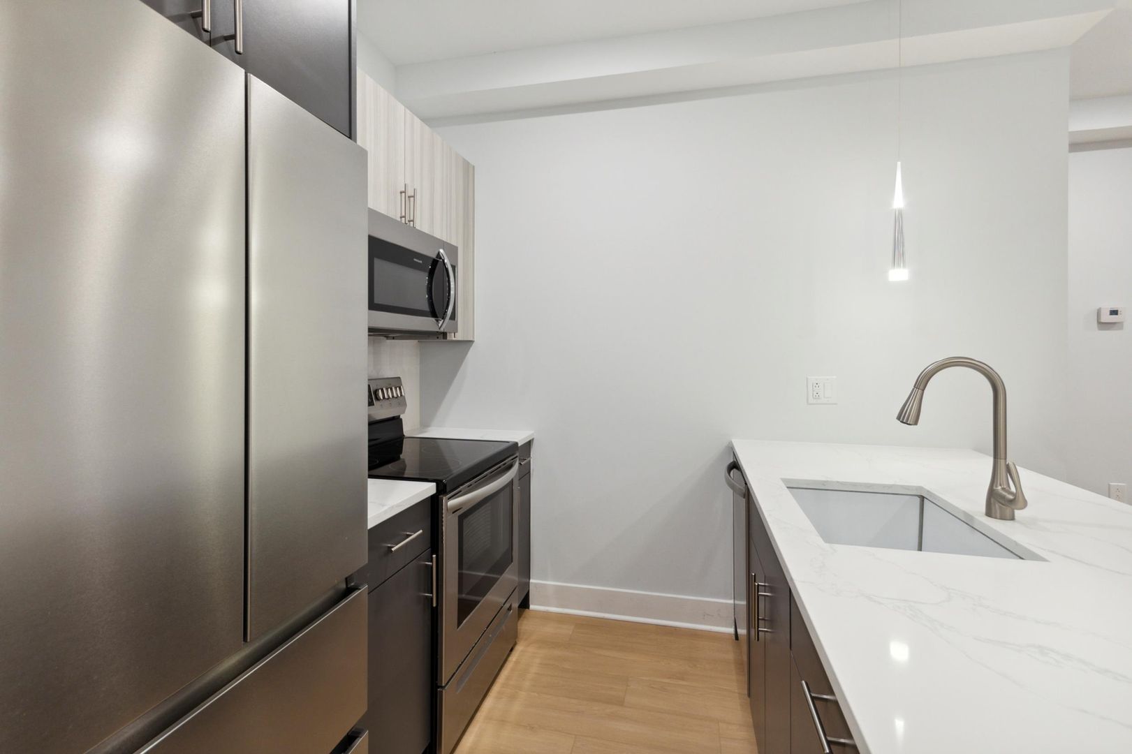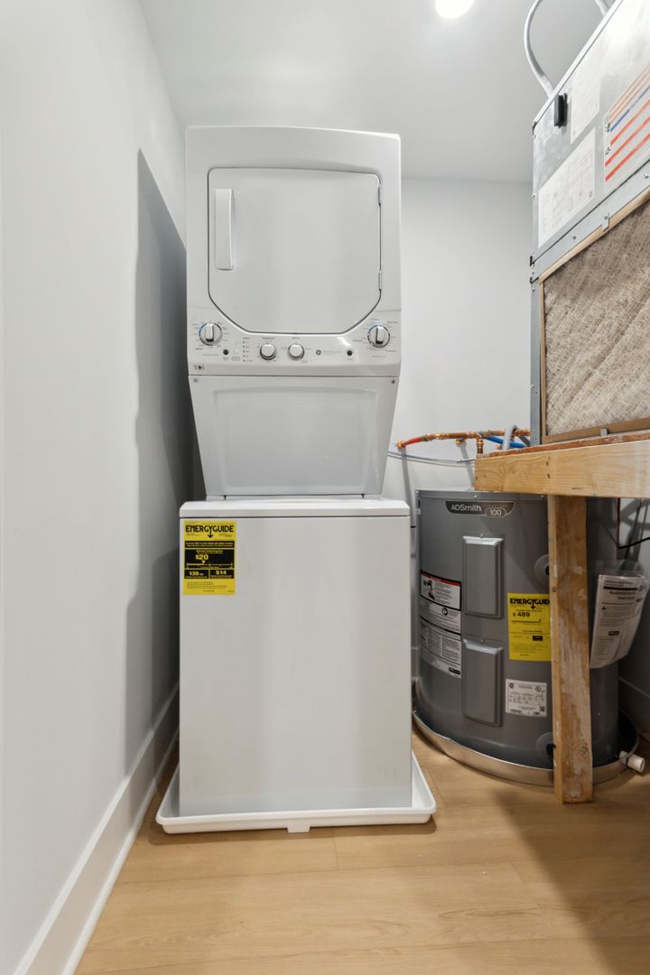 -Full size stainless steal appliances: electric range, microwave, dishwasher, garbage disposal, refrigerator, video intercom, in unit laundry, built-in closet.