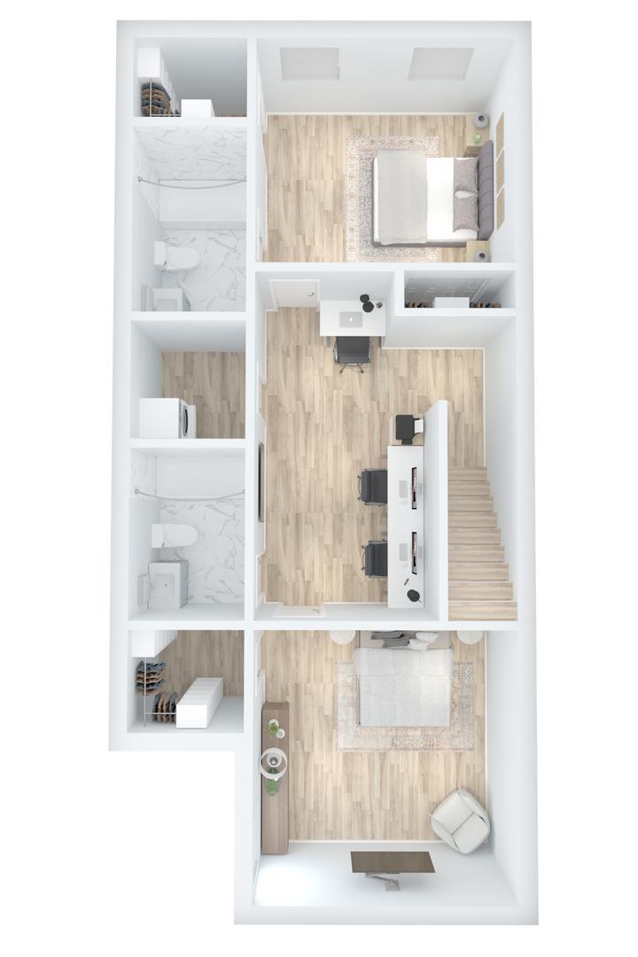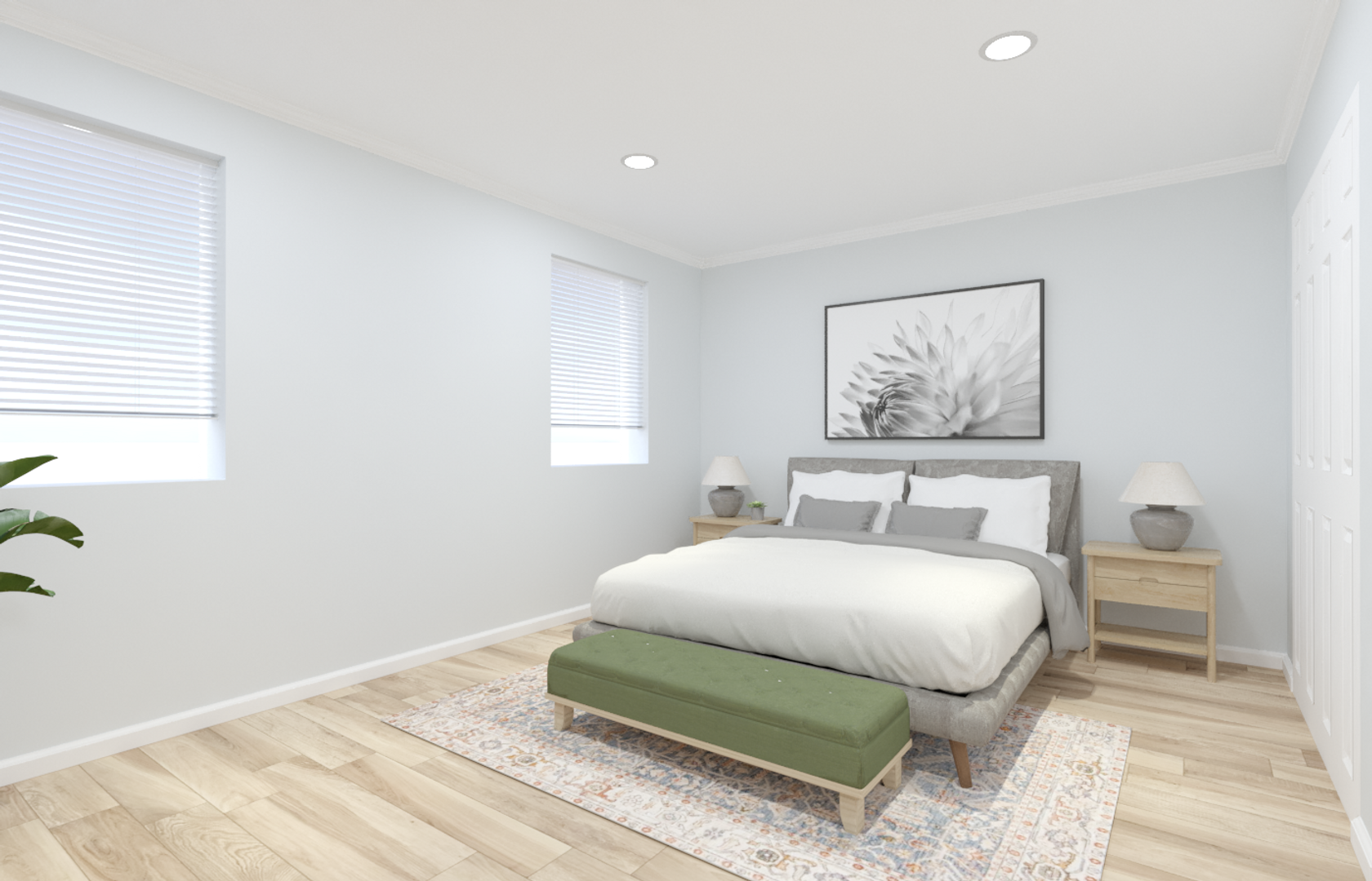 -Bedrooms are great great space for a full/queen bed.