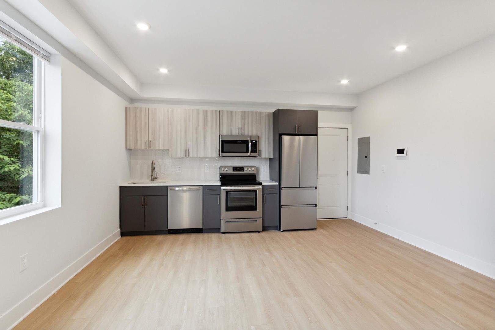 -Full size stainless steal appliances: electric range, microwave, dishwasher, garbage disposal, refrigerator, video intercom, in unit laundry, built-in closet.
